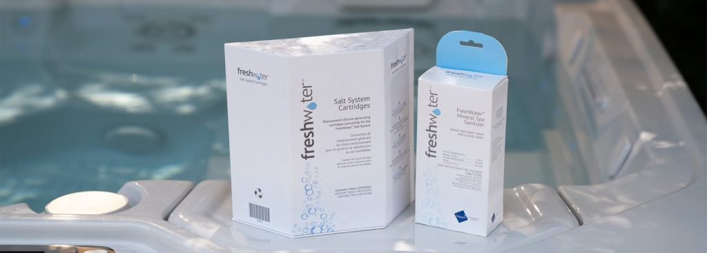 • The FreshWater Salt System is easy to use and can keep spa water sanitized for up to a full year with just a little salt.