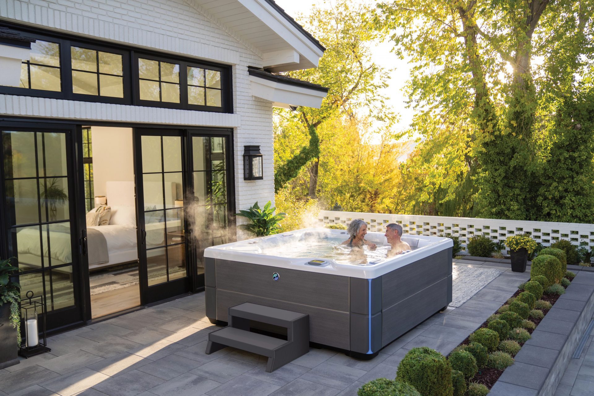 The Aria offers five multi-level seating options for smaller and taller users. It includes two Moto-Massage® DX jets and a lounge with wrist, calf and foot jets.
